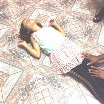 Várias pessoas tocadas pelo Espirito Santo, lá fora da Igreja, derramadas pelo chão com a Glória de Deus.