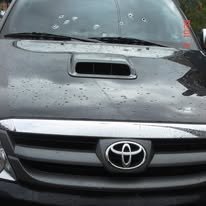 Eles concordaram, e pedi a uma senhora que estava do meu lado, entregar minha filha para minha esposa, quando ela a encontrasse. Me dirigi para o carro que já estava ligado, o meu carro, a hilux. Quando fui abrir a porta, não conseguia entrar, tinha, parece que um vidro transparente que não deixava eu entrar.